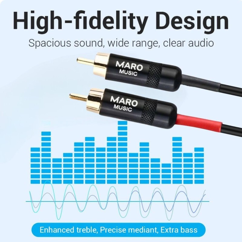 Maro 2RCA Male to 2 RCA Male Stereo Audio Cable Gold Plated for Home Theater, HDTV, Hi-Fi Systems and More 2 Male to 2 Male RCA Audio Cable, 10ft