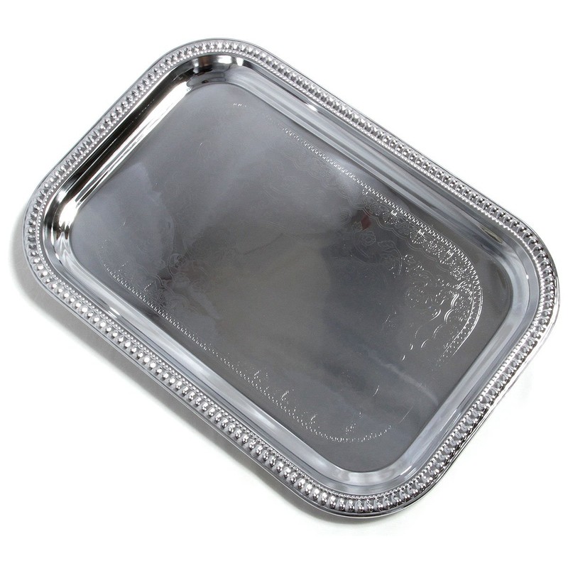 - Traditional rectangular trim floral pattern engraved serving tray, outside dimensions of our trays are 20.7" x 14".