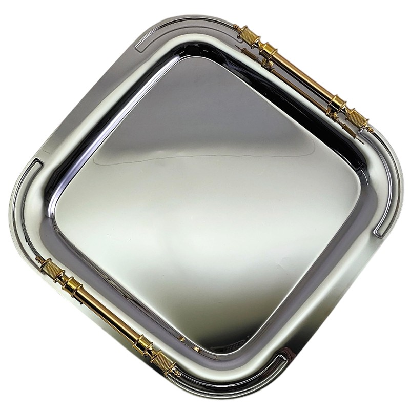 - An effortlessly charming decorative piece at an affordable price. Featuring a gold-plated, high-quality iron finish with a mirrored reflection, it's perfect for the holidays or everyday use. This multi-purpose serving tray is ideal for buffet and catering services.
