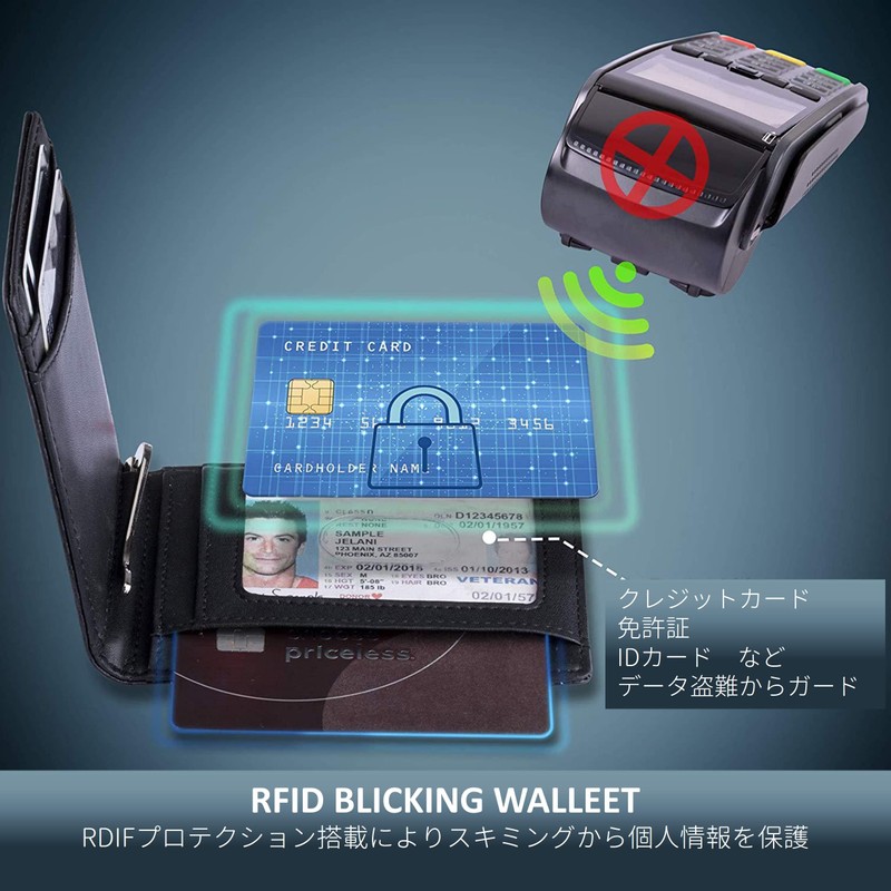 - The interior material uses RFID detecting anti-skimming material such as credit cards with IC chips, driver's licenses and electronic money, to protect against identity theft
