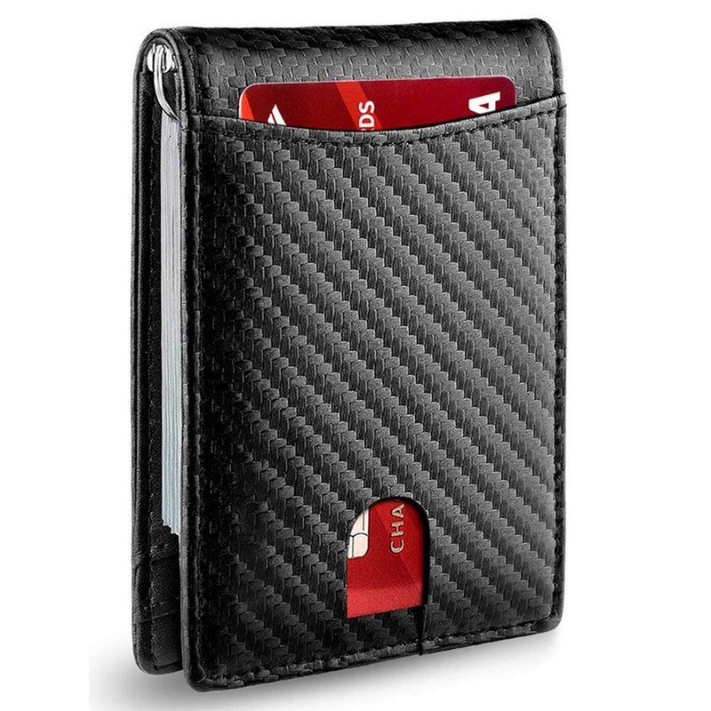 MaRowsm Men's Slim Wallet Card Holder Money Clip, carbon black