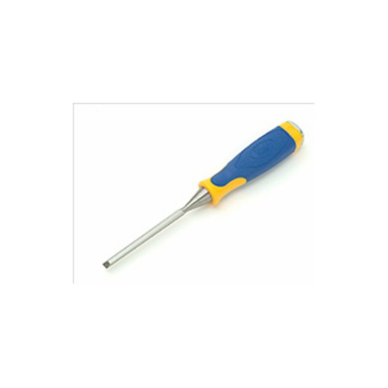 The IRWIN Marples MS500 Series All-Purpose Chisels with ProTouch Handle. These chisels have a large metal striking cap to withstand hammer impacts, prolong the life of the handle, and prevent mushrooming. ProTouch handles are designed to provide extra comfort, grip, and also reduces vibrations and reduces hand fatigue. One-piece blade forging gives added strength and durability. Made from special tool steel which ensures a much sharper cutting edge for quicker and easier operation. A special hardening process gives the blade a longer lasting edge - less time spent re-sharpening. The blade is hardened to the last inch giving more working chisel for your money. Every chisel is honed and sharpened ready for use out of the packet - to save you time and effort. Avalible in the following sizes: MARS50014: 6mm (1/4in).MARS50038: 10mm (3/8in).MARS50012: 12mm (1/2in).MARS50058: 16mm (5/8in).MARS50034: 19mm (3/4in).MARS5001: 25mm (1in).MARS500114: 32mm (1 1/4in).MARS500112: 38mm (1 1/2in).MARS5002: 50mm (2in). The following sets: MARS500S3: 12, 19,and 25mm (1/2, 3/4 and 1 in)MARS500S3SS: 13, 19 and 25mm (1/2, 3/4, and 1in) (sharping kit inculded). MARS500S5W: 6, 10, 12, 19, & 25mm (1/4, 3/8, 1/2, 3/4, and 1in)MARS500S6: 6, 10, 12, 19, 25, & 32mm (1/4, 3/8, 1/2, 3/4, 1 & 1 1/4 in).1 x Marples MS500 Series All-Purpose Chisels with ProTouch Handle 6mm (1/4in). MS500 All-Purpose Chisel ProTouch Handle 6mm (1/4in)