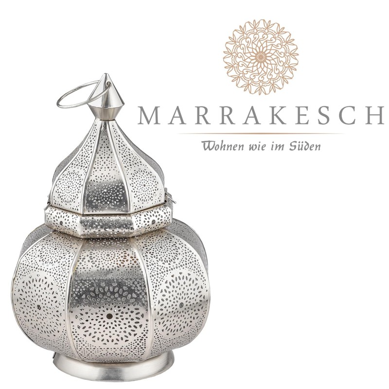 Marrakech Lamp and Lantern in One Metal 30 cm Large Table Lamp Lantern Lamisa Silver Oriental Decoration