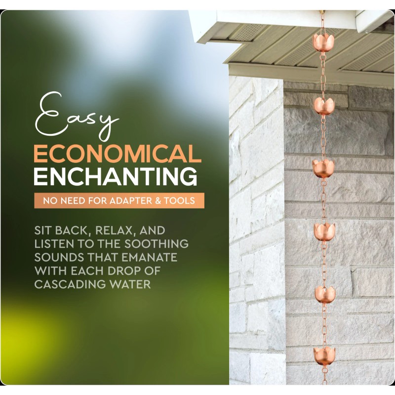 Marrgon Copper Water Chain with Tulip Styled Cups – Durable & Thick Rain Chain - 3 ft
