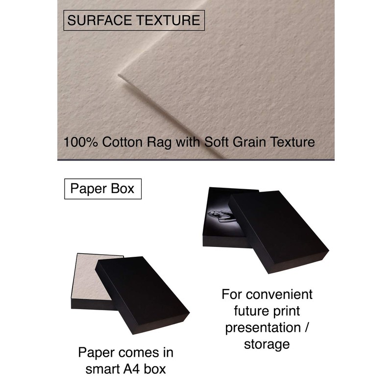 - With a mould made base and natural white finish, this affordable textured fine art paper provides an excellent colour gamut and impressive d-max.