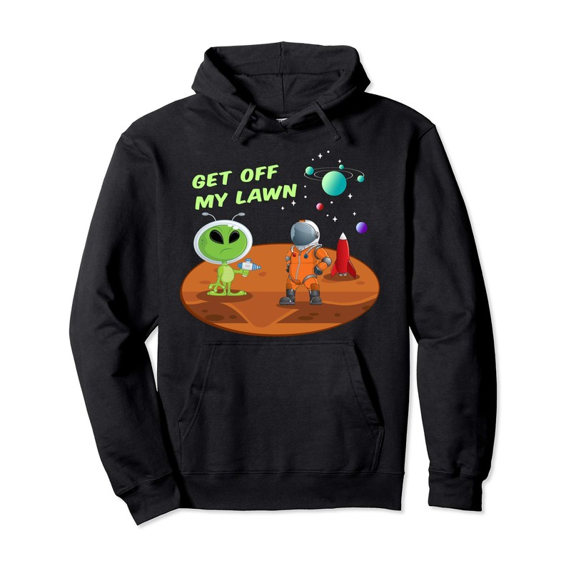 Mars Alien Get Off My Lawn Funny Laser Gun Astronaut Planet Pullover Hoodie