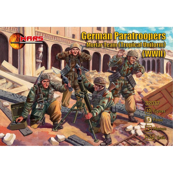 Mars Figures 32037-1/32 ドイツ空挺部隊 モルタルチーム (トロピカルユニフォーム) 第二次世界大戦