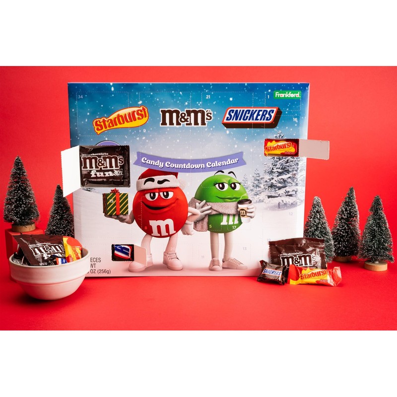 Mars Holiday Candy Countdown Calendar with M&M'S, Snickers, Starburst Fun Size Assorted Candies, 24 Pieces, 9.03 oz, Christmas Advent Calendar by Frankford