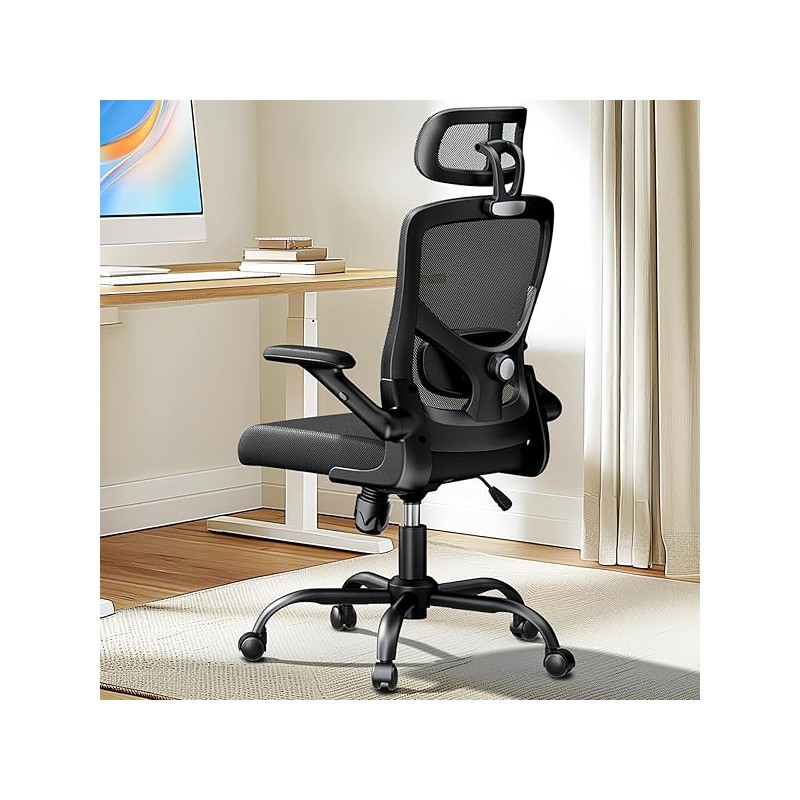 Marsail Ergonomic Mesh Office Chair High Back Desk Chair Adjustable Lumbar Support with Headrest Flip-Up Liftable Arms Swivel Computer Task Chair for Big and Tall People