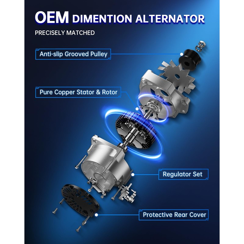 - Reliable performance: : Alternator's high quality bearings with high temperature lubricants and double lip rubber seals reduce friction, vibration and noise. The alternator will keep your vehicle powered, even under demanding conditions.