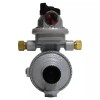 Fairview Auto-Changeover Regulator Assembly Model: GR-9994 The Auto-Changeover LP Regulator allows you to hook up 2 Propane tanks and the regulator automatically switches over to the second tank once the first one runs out (and vice versa). The indicator changes color to let you know when a tank has been depleted and needs to be refilled. The inlet is a 1/4" SAE inverted flare and the outlet is a 3/8" NPT female pipe thread.