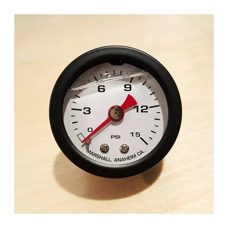 Marshall Gauge 0-15 Psi Fuel Oil Pressure White Black Casing 1.5" Liquid Filled