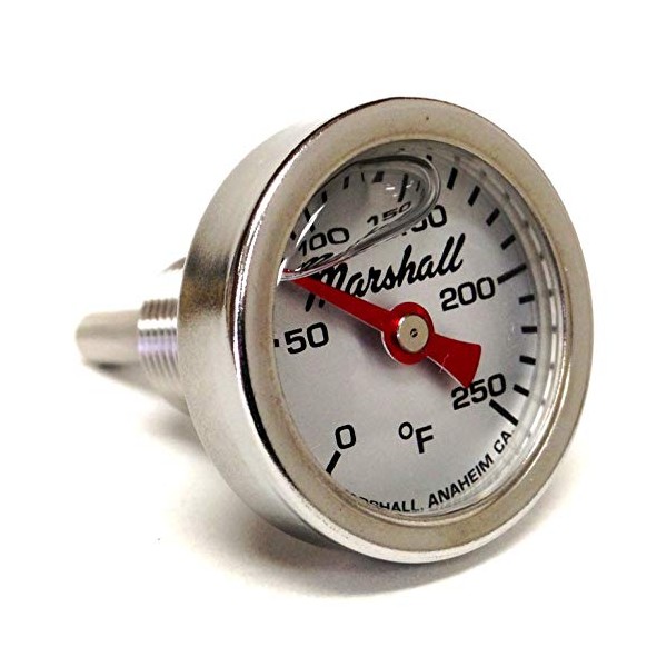 Marshall Instruments I-14-LS Direct Mount Engine Thermometer, 0-250F, Silver Dial, Liquid Filled