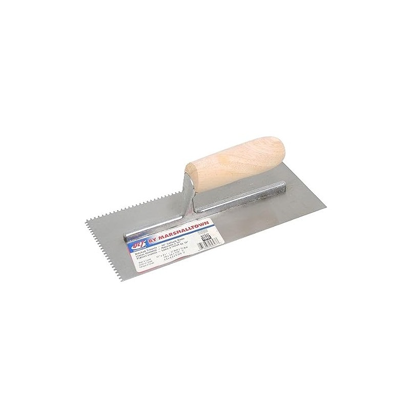 Marshalltown QLT Cut-Back Notched Trowels, Wood Trowel Handle, U-Shaped, 3mm Y-Notch, 1.5mm Z-Notch, 3mm X-Notch, 11x4.5 in Blade, NT992