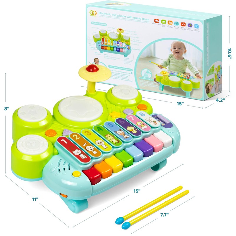 - 【The Best Gift for baby】: A great toddler boy girl toys & Montessori toys!Made of high quality ABS material, it is suitable for infants and toddlers 10+months , which helps to promote children's learning and intellectual development, making it the perfect gift for 1 2 3 year old girl and boy birthday gift. requires 3 AA batteries (Not Included). Attention: The drumsticks does not for kids under 2 year.
