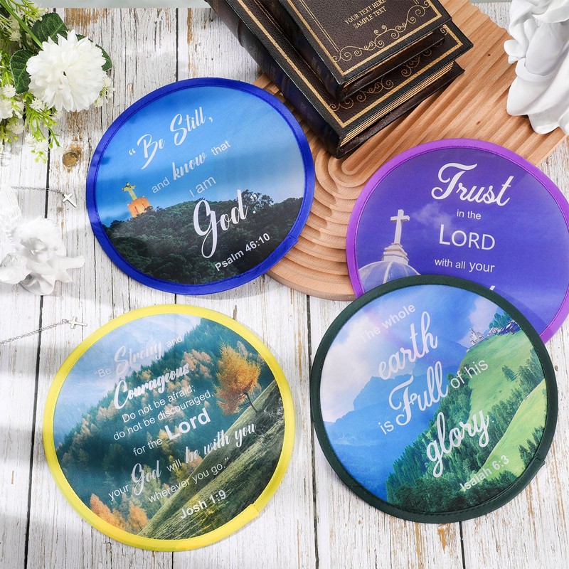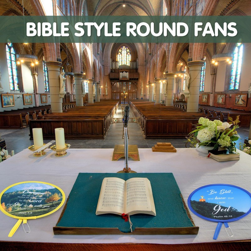 - Church Style: you will receive 12 pieces of church round fans with 4 pattern designs, 3 pieces for each design; They are printed with Christian patterns of Bible fragments, crosses, churches, and mountains, and the main colors are respectively yellow, green and blue; A variety of designs can match different decorative needs and occasions, enough quantity for you to share with friends
