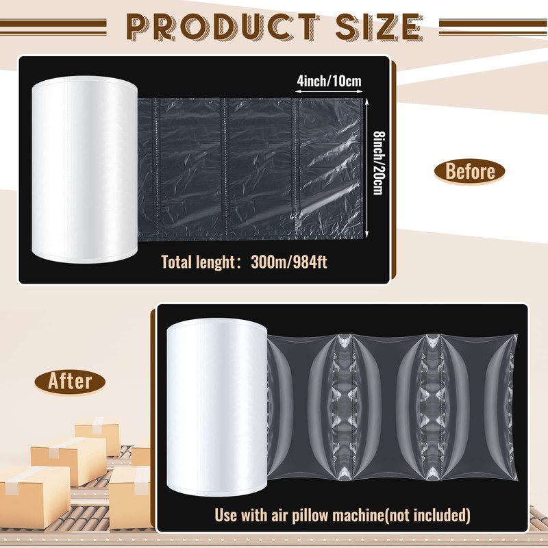 - High Applicability: suitable for various air cushion machines for small, medium and large enterprises; The packing plastic wrap has a good buffer effect and light in weight at the same time; When it is not inflatable, the size is easy to store and won't take too much space