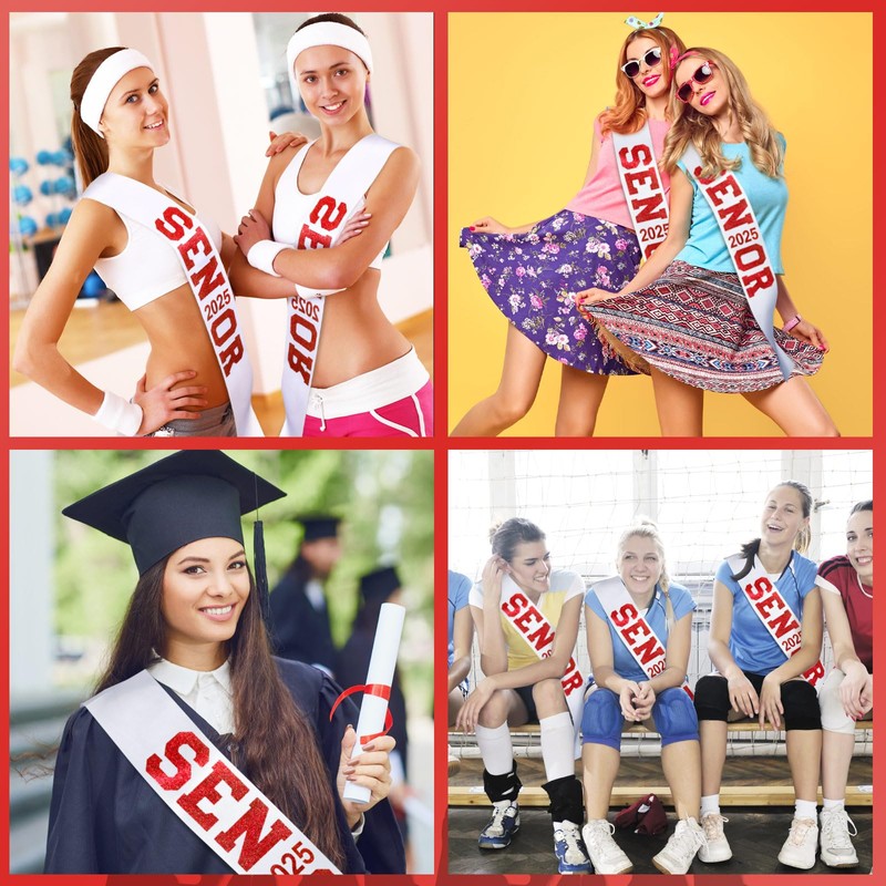 Marsui Senior 2025 Satin Sashes with Glitter Letters Cheerleader Sash Graduation Celebrations Sashes Senior sash Class Competition 2025 Sashes for Girls Graduation Party(24 Pcs,Classic Style)