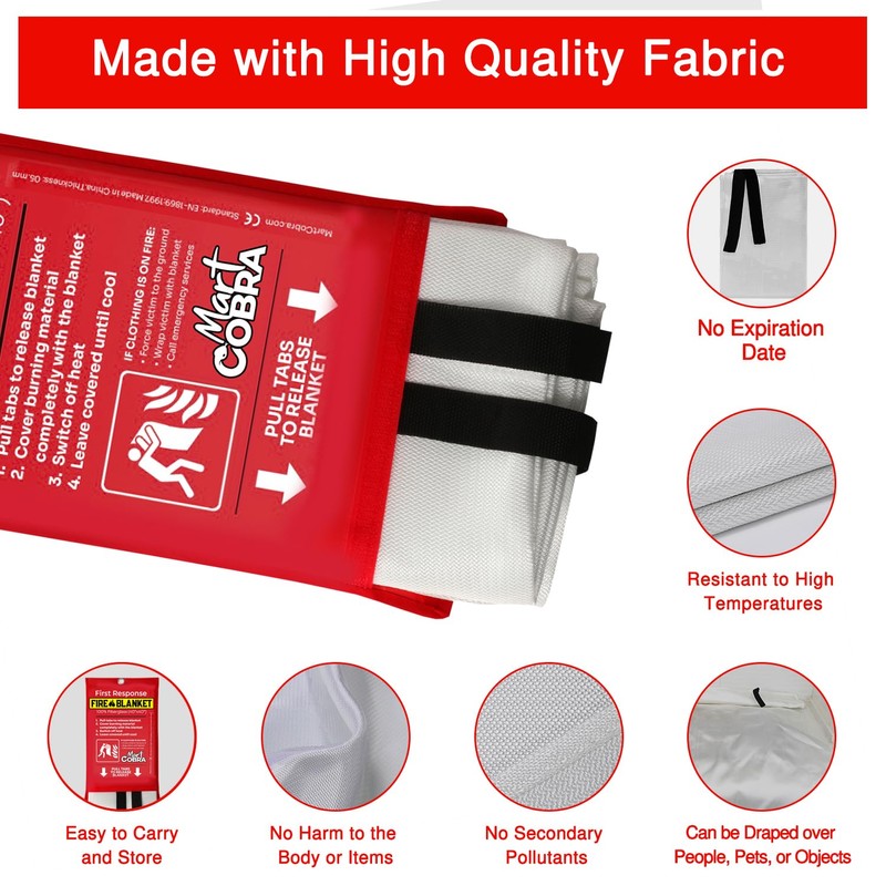 Mart Cobra Emergency Fire Blanket for Home and Kitchen Fire Extinguishers for The House x4 Fiberglass Fire Blankets Emergency for Home Fireproof Blanket Fire Retardant Blankets Grease Spray