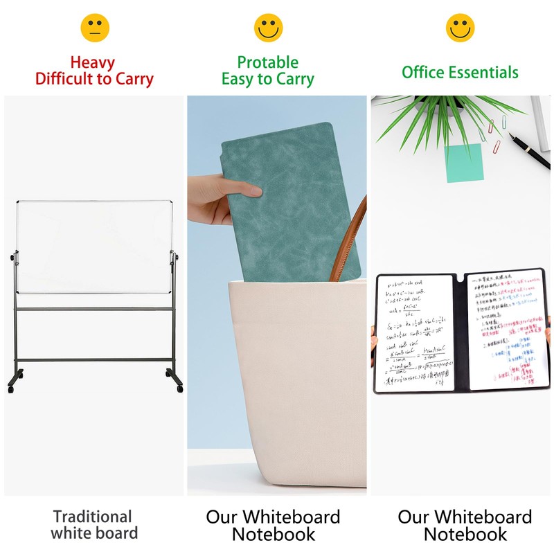 - Reusable and wide use: this erasable notebook board saves paper and space and reduces waste. Suitable for personal and professional use. Perfect for home office planning, brainstorming, drawing, leaving small messages or travelling. Also ideal as a gift.