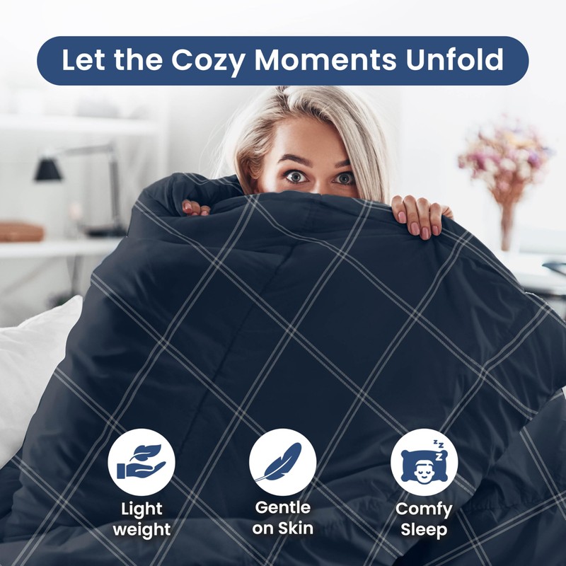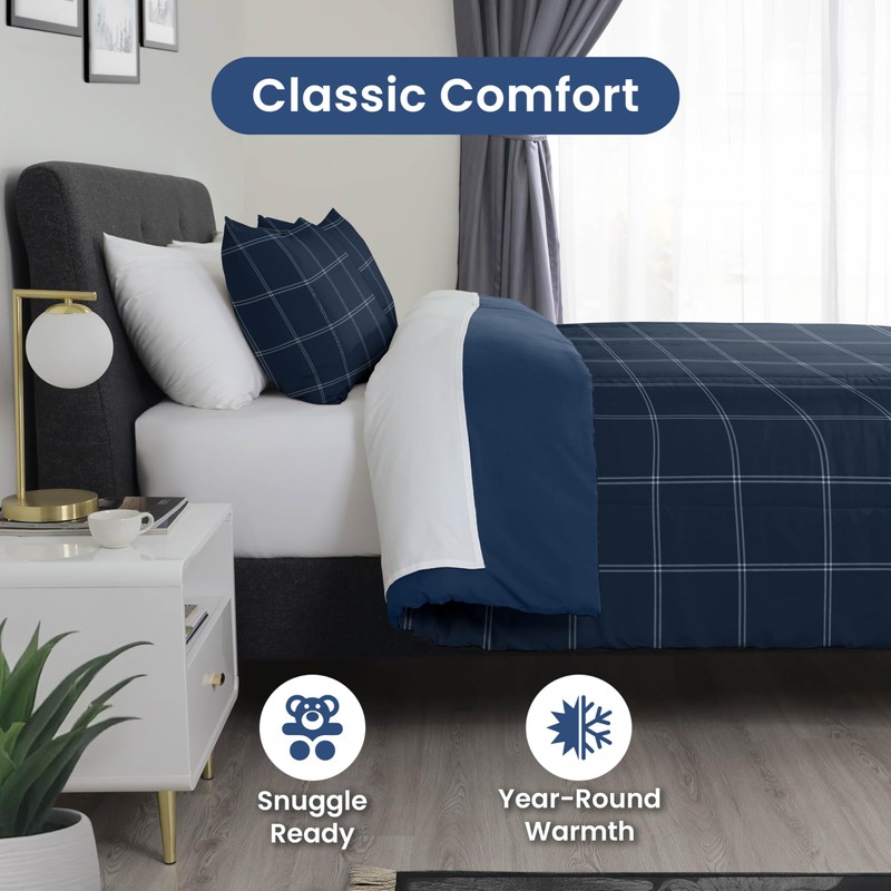 Martex 2-Piece Reversible Comforter Set – Twin Comforter Set – Versatile Room Decor – Lightweight – Durable Bedding Set – Machine Washable – Super Soft – Navy Check
