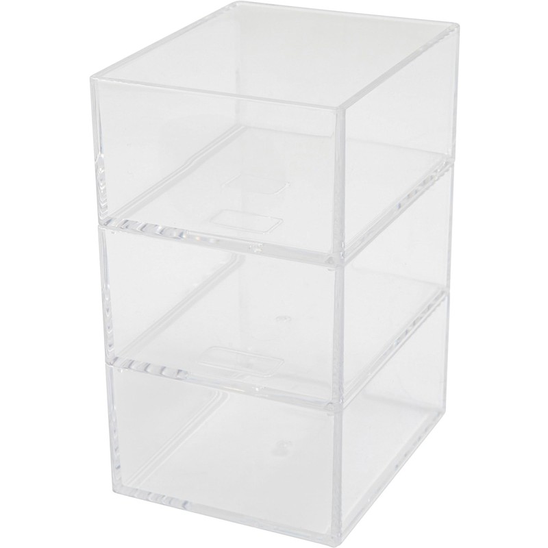 Martha Stewart Brody Desktop Storage Organizer, Stack and Slide Plastic Organizer Tray, Organizer for Office, Kitchen, or Vanity, 3" x 3.75", Clear