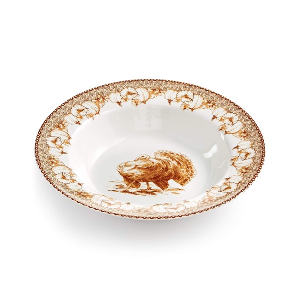 The Martha Stewart Collection Sepia Turkey Dinner Bowl offers seasonal autumn charm for your dinner table with its cheerful motifs and fall-tones.