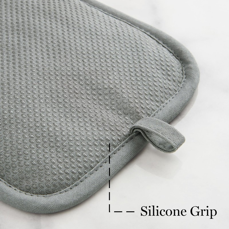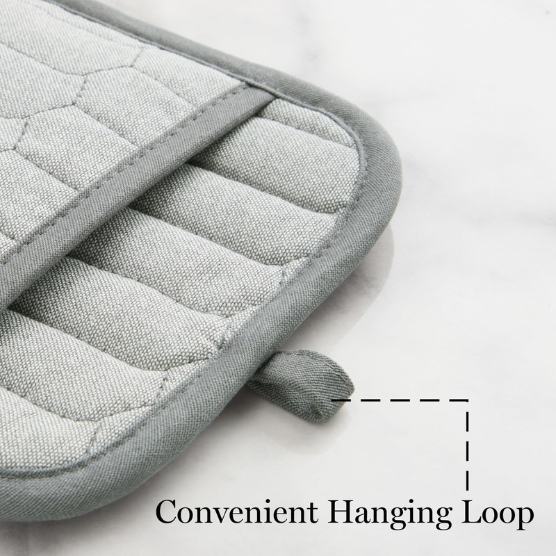 MARTHA STEWART Honeycomb Quilted Chambray Pot Holder 2-Pack Set, 100% Cotton, Flexible Non-Slip Silicone Grip, Heat Resistant, Grey, 7"X10"
