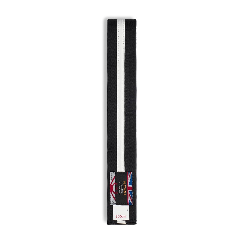 Martial Arts Cotton Striped Coloured Grading Belt - Black Belt With White Stripe (320cm)