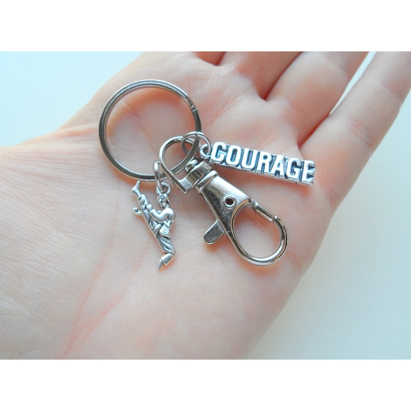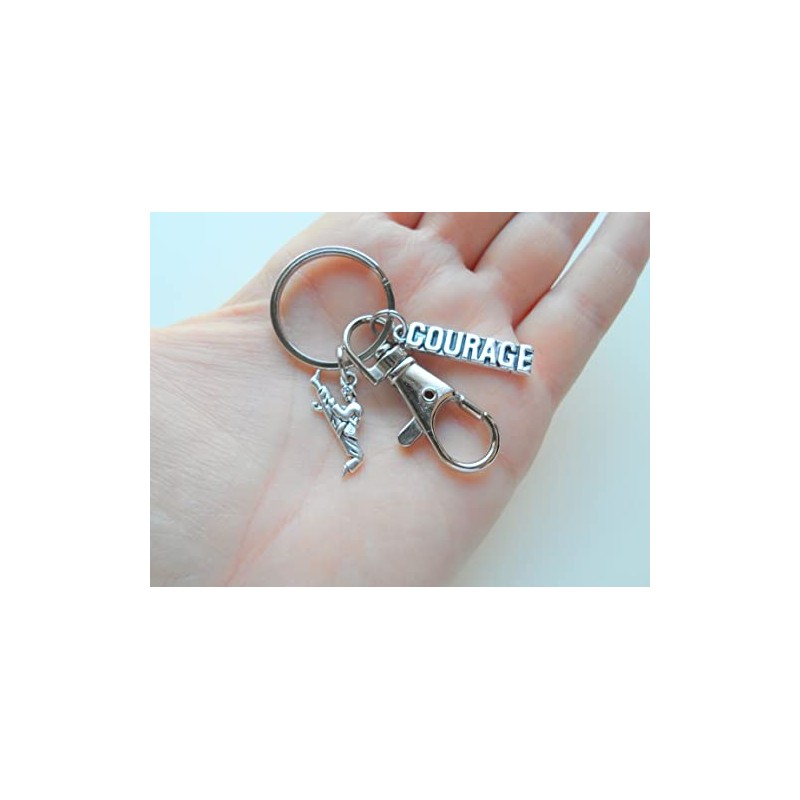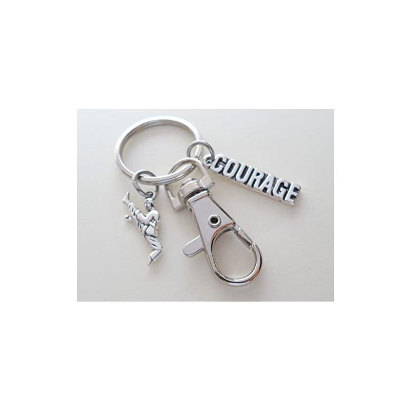 One keychain with a kicking martial arts student charm, Courage tag charm, and a swivel clasp hook. Great gift for someone studying martial arts like Karate or Taekwondo on a school team or part of a community group. Or gift to a coach as an appreciation gift. The swivel clasp is about 1 ¼ inches long.