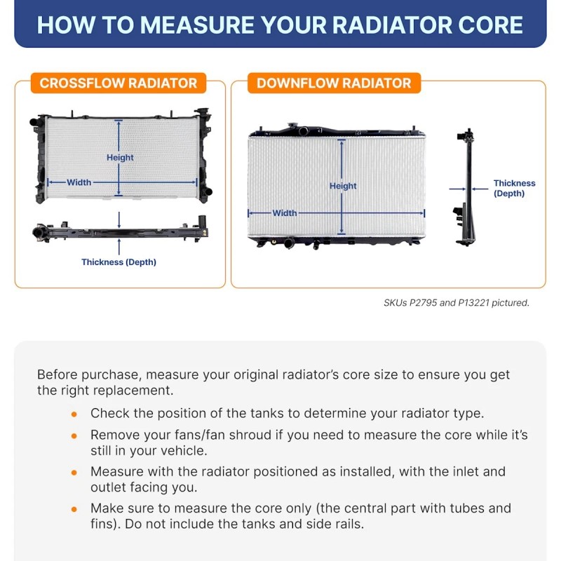 - Features: 26.44 x 18.38 x 0.69 in., Top Right Inlet, Bottom left outlet, Without Transmission Cooler, Without Engine Oil Cooler, 1-Row Core, Plastic Tank, 30-Day Return Policy