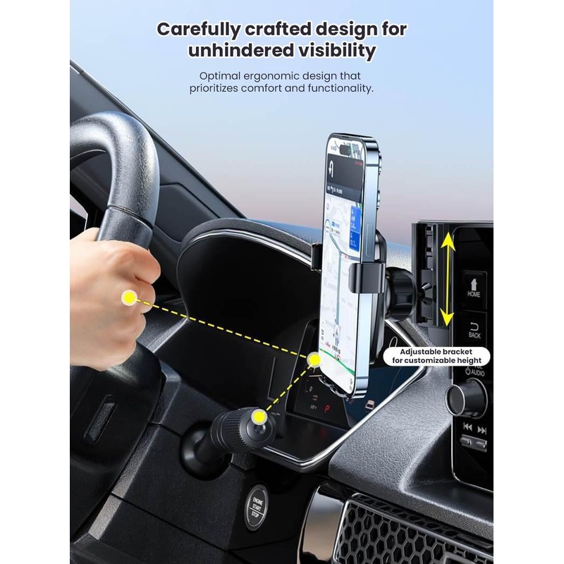 - Hands-Free Convenience: Keep your phone easily accessible for navigation, music, and hands-free calls, enhancing safety and convenience while driving.