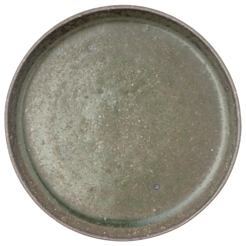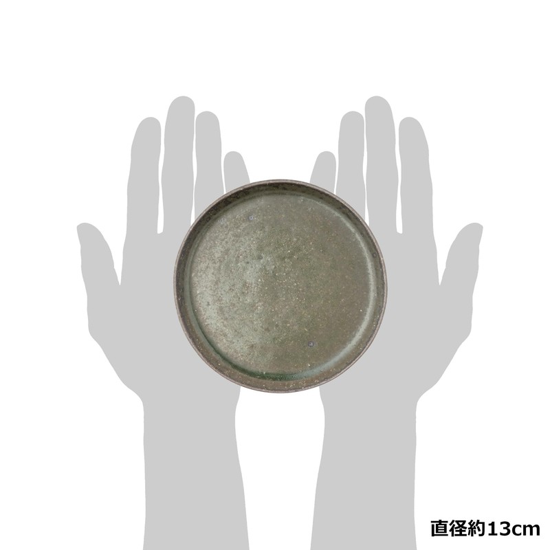 Marui Pottery MR-3-4099 Shigaraki Ware Hephamon, Plate, Diameter Approx. 5.1 inches (13 cm), Carbonized Vidro Green