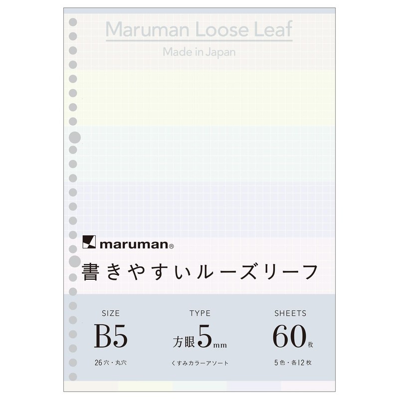 Maruman B5 L1232-99 Loose Leaf Dull Color Assortment, 0.2 inch (5 mm) Ruled