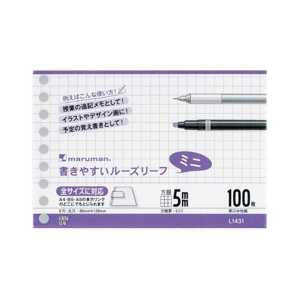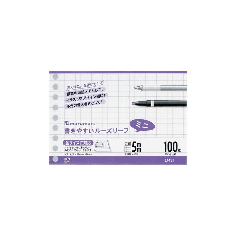 Maruman B7 Loose Leaf Mini, 0.2 inch (5 mm) Square Ruled, L1432, Set of 2