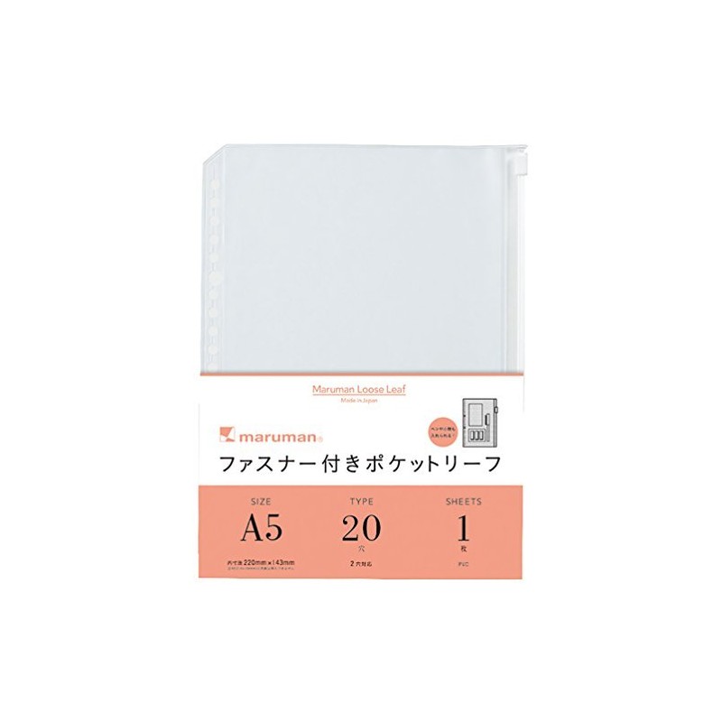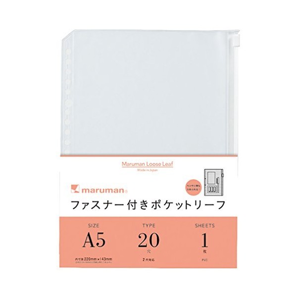 Maruman L821 A5 Front Zippered Pocket Leaf 20 Hole 1 Piece It Together Set [3 Pieces]