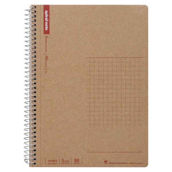 Maruman N248ES Spiral Notebook, Square Ruled, 80 Sheets