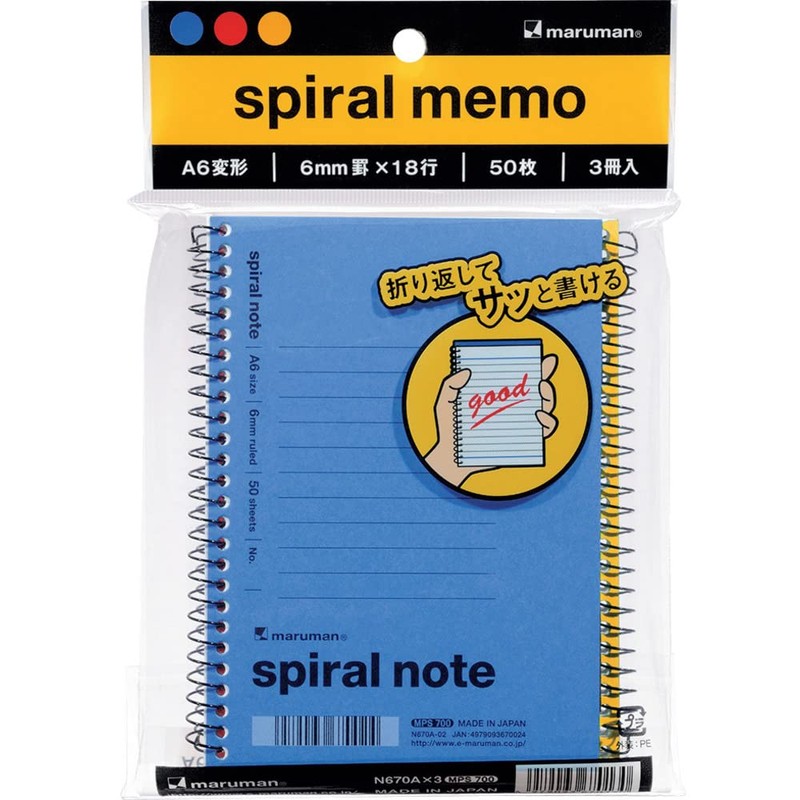 Maruman N670AX3 Spiral Notebook, A6, Pack of 3