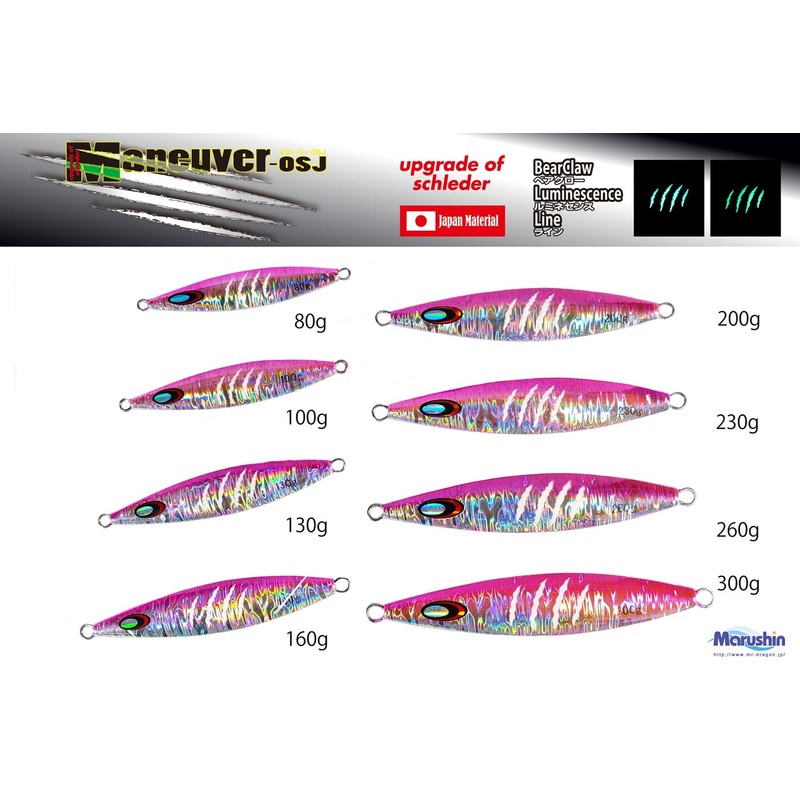 - Concept: [Manuver OSJ] ... This metal jig is suitable for slow jigging in a fat body and has a large jerk and large fall for a great effect. The 4 lines like a bear claw, glowing in a cold light