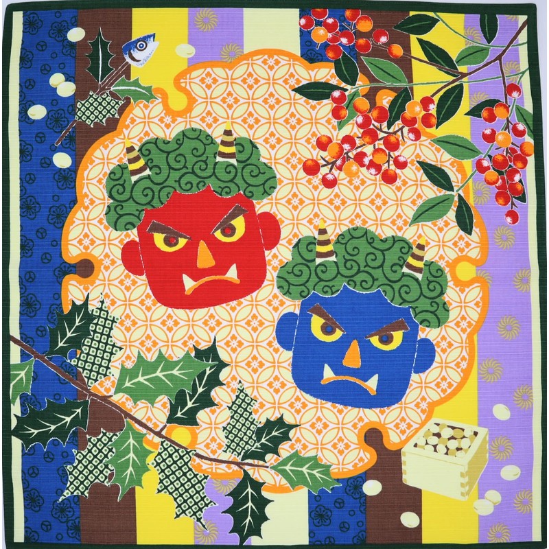 Maruzen Furoshiki Cotton Furoshiki Sato Hiromi Setsubun Approx. 19.7 x 19.7 inches (50 x 50 cm)