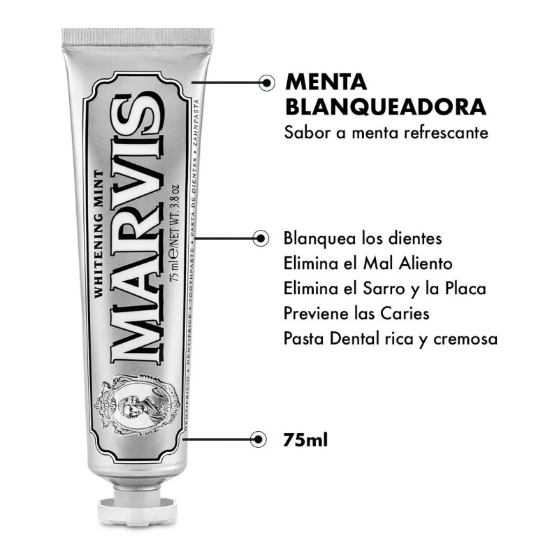 Atesora cada momento frente al espejo con la Marvis Pasta Dental Blanqueadora 75ml y transforma tu higiene bucal en un ritual de cuidados excepcionales. ¡Atrévete a lucir una sonrisa que ilumine el mundo! 🌐