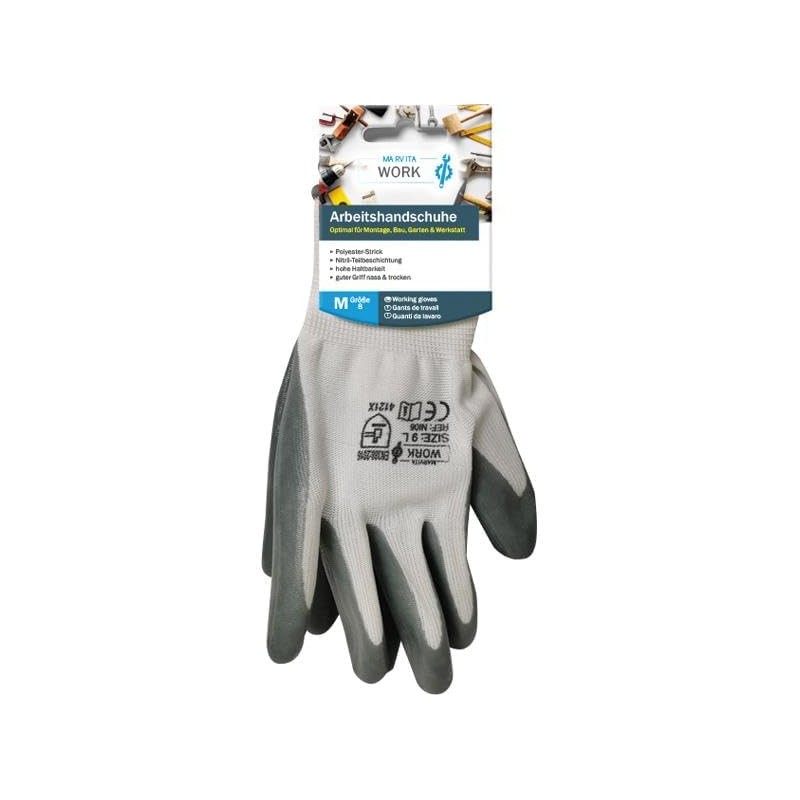 MARVITA Work Gloves Polyester/Nitrile Size: M-XL White/Grey Brand