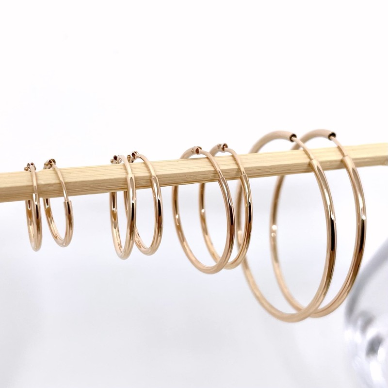 - Classically elegant: these fine, simple hoop earrings in rose gold made of gold-plated 925 sterling silver are a timeless classic. They have a diameter of approx. 40mm