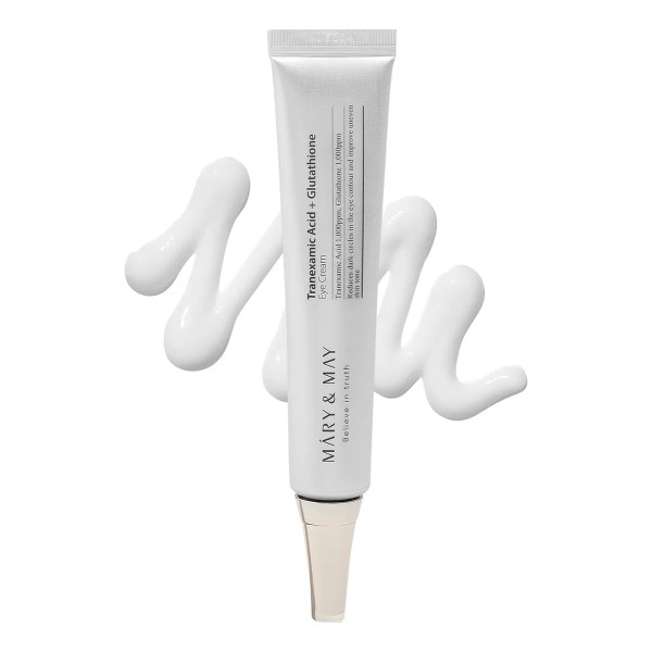 Mary&May Crema de Ojos con Ácido Tranexámico + Glutatión: Crema de noche para ojeras pigmentadas y manchas. Con Ácido Tranexámico y Glutatión, aclara, unifica e ilumina el contorno de ojos para una mirada radiante.
