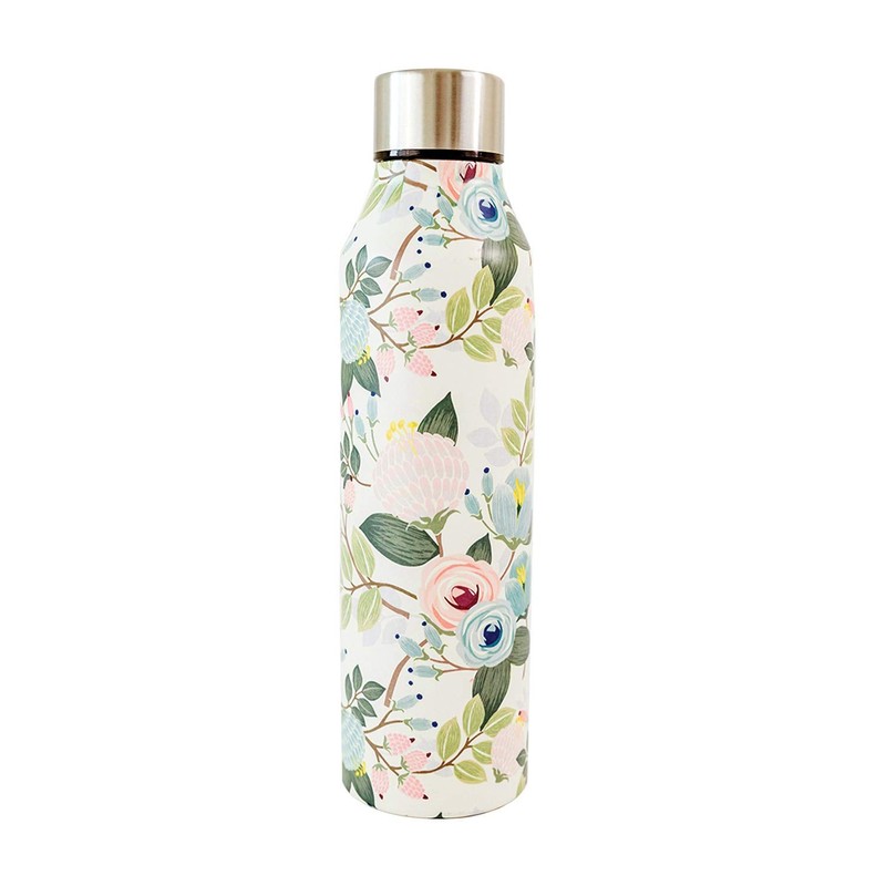 Mary Square 17 oz. Stainless Bottle. Double walled, Vacuum insulated technology keeps both temps cold for 24hrs and hot for 12hrs. (Peach Floral Pattern)