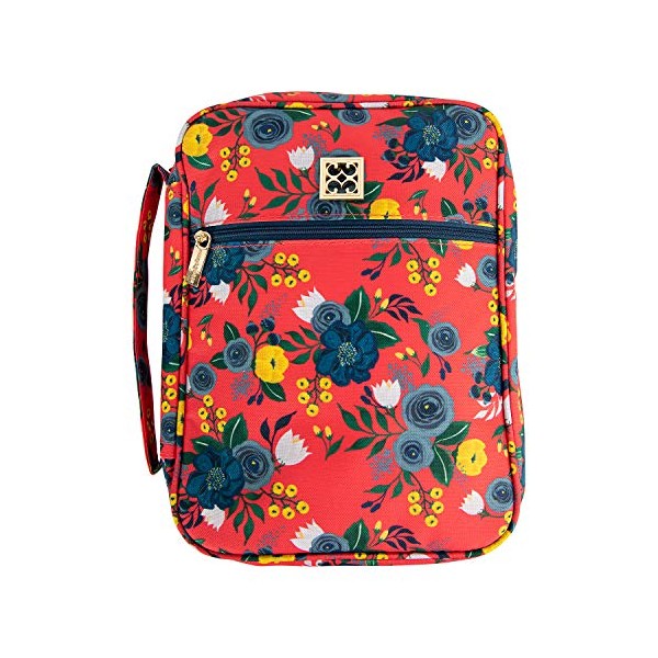 - Bible cover measures approximately 10.25 inches L x 7.5 inches W x 2.5 inches D; Front Pocket 6.75 inches L x 6.75 inches W; Inner Pocket 9.5 inches L x 7 inches W; Handle 8 inches L x 1 inch W; Fits most standard Bibles