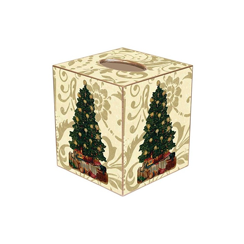 Marye-Kelley TB2529 - Christmas Tree on Gold Damask Tissue Box Cover