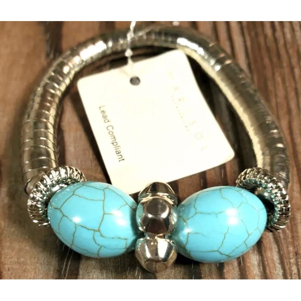 Turquoise Silver Tone Stretch Bracelet NWT Mary Sol . Condition is New with tags. Shipped with USPS First Class.