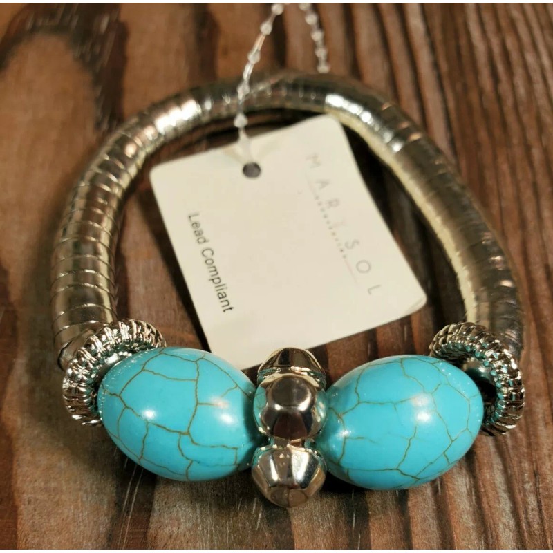 Marysol Turquoise & Silver Tone Stretch Bracelet NWT Mary Sol womens fashion