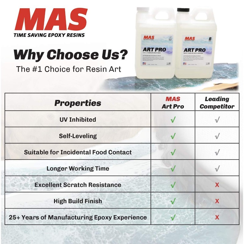 MAS Art Pro Epoxy (2-Quart Kit) | 2-Part Resin and Hardener | Clear Epoxy Resin Kit with Low Viscosity and Better UV Resistance | for Jewelry Making, Flower Preservation, and Other Art Resin Crafts
